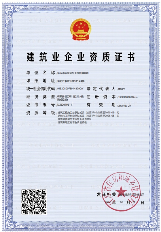 擁有建筑裝飾裝修專業承包二級資質;電子與智能化工程專業承包二級資質; 建筑幕墻專業承包二級資質以及建筑工程施工總承包三級、市政公用工程施 工總承包三級、鋼結構工程專業承包三級等施工資質,年產值近億元。 公司以從事室內外裝飾及幕墻工程的設計與施工為主